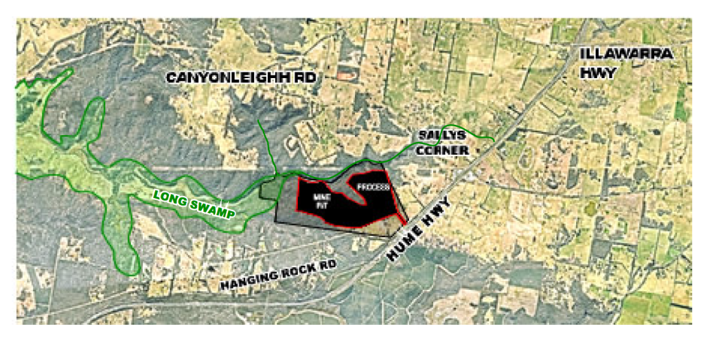 The mine proposal is to clear 110 hectares of land, mostly native bushland and mine sandstone to a depth 60 m below ground level – well below the water table. The silica rock will be processed on site by crushing to sand and trucked out 24/7, 365 days for 30 years. The pit will eventually be filled with trucked-in waste, becoming Sydney’s new tip. The size of the proposed mine and plant is massive; half the Sydney CBD and more than 5-times that of Hi-Quality’s operations at Windemalla and Menangle. This is in the middle of the rural-residential community of the Southern Highlands.